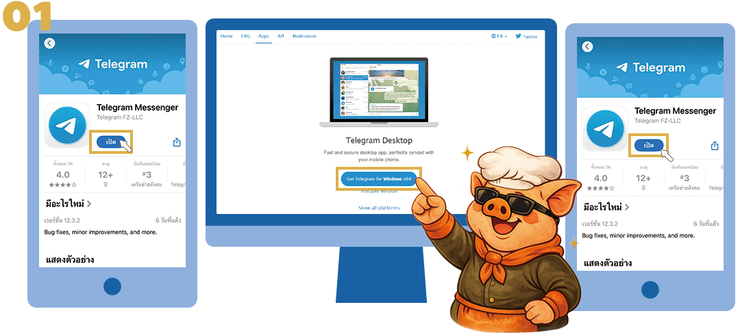 ขั้นตอนการติดตั้ง Telegram และเข้าสู่ YumGame