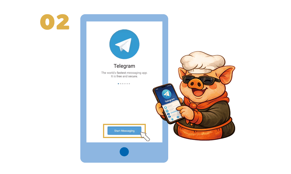 ✦ เมื่อติดตั้งเสร็จแล้ว ให้เปิดแอป Telegram ขึ้นมา หน้าจอจะแสดงคำแนะนำเริ่มต้น ให้กดที่ปุ่ม Start Messaging】 เพื่อเข้าสู่ขั้นตอนการลงทะเบียน